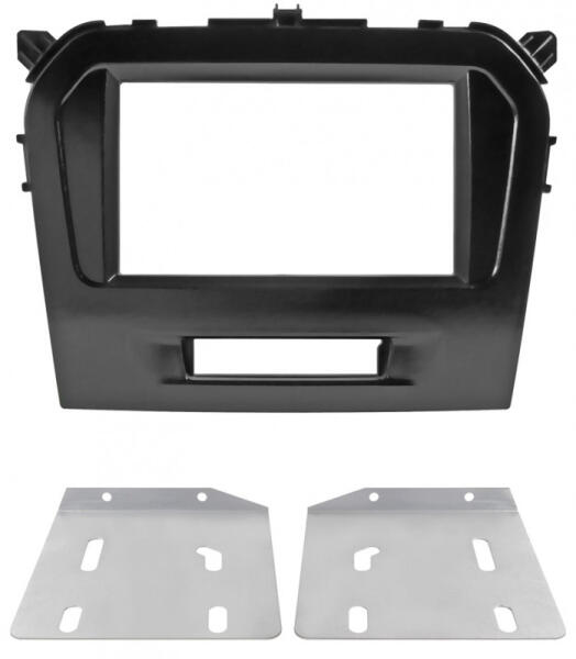 2 DIN autórádió beépítő keret. A beépítő keret átalakítja a gyári rádió, műszerfal kialakítását úgy, hogy lehetővé tegye a gyári rádió cseréjét univerzális szabvány 2 DIN méretű fejegységre. Kiváló minőségű és méretpontos olasz Phonocar gyártmány, szín és textúra megegyezik a műszerfal kinézetével. Tartalmazza a fém beépítőkeretet is! Fényes Feket
