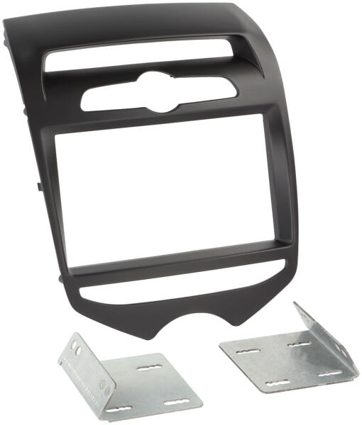 Hyundai ix20, manuális klímás 2 DIN autórádió beépítő keret. A beépítő keret átalakítja a gyári rádió, műszerfal kialakítását úgy, hogy lehetővé tegye a gyári rádió cseréjét univerzális szabvány 2 DIN méretű fejegységre. Kiváló minőségű német ACV gyártmány.