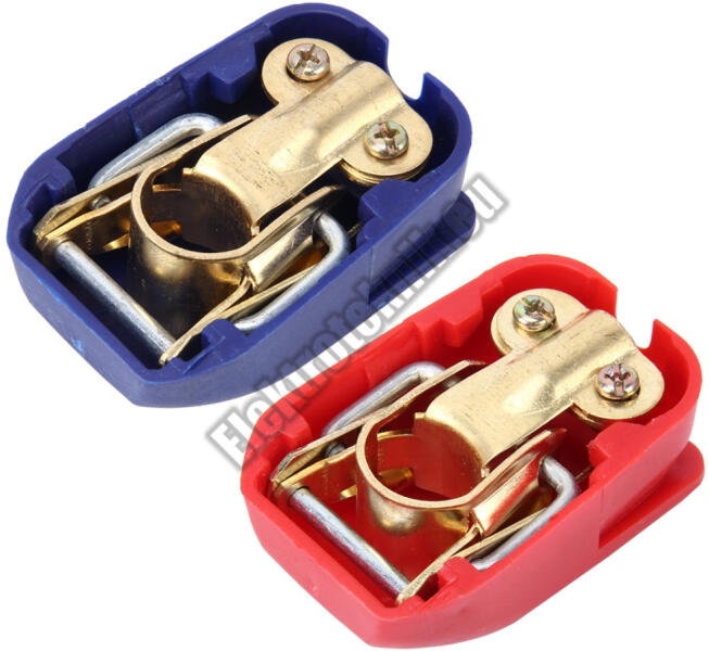 Akkumulátor gyorscsatlakozó saru pár Jellemzők: - Negatív 17mm csatlakozó - Pozitív 19mm csatlakozó - Műanyag védőburkolattal - Anyaga: réz, műanyag - Eggyetlen mozdulattal az akkumlátorra csatlakoztatható - Max. : 200Ah akkumlátorhoz használható Az ár 1 párra vonatkozik!