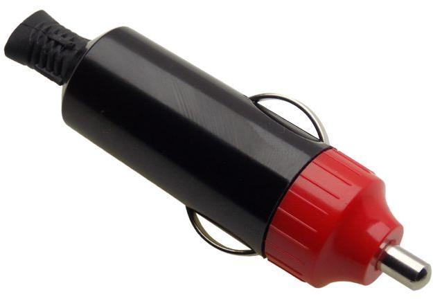 Autó szivargyujtó dugó törésgátlóval. Jellemzők: - teljes hossz: 80 mm - szín: fekete, piros
