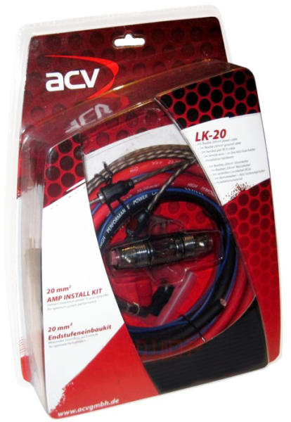 ACV LK-20 Tápkábel szett 20mm2 5méter, testkábel, 5m RCA kábel. Biztosíték és biztosítékház. Szerelési segédanyagok.