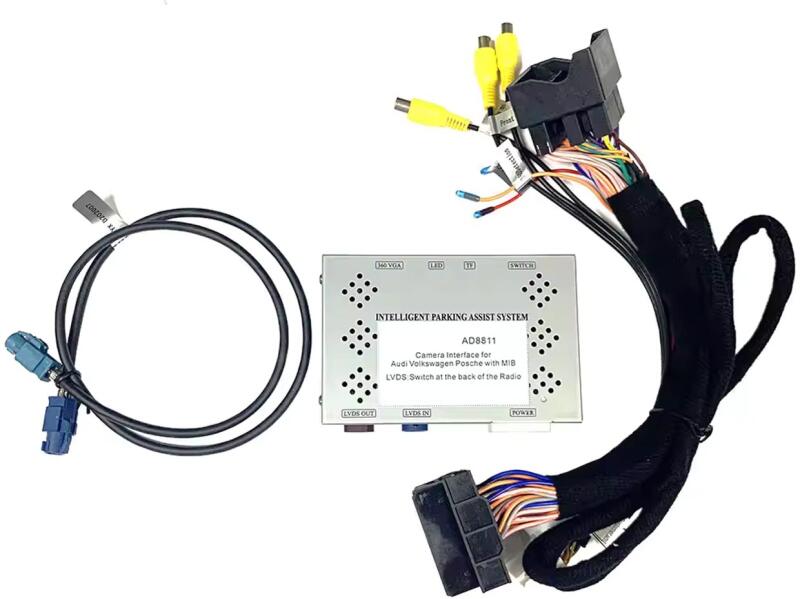 Tolatókamera és frontkamera illesztő Audi, VW, Porsche MMI, MIB, PCM 4.0 rendszerekhez. Tolatókamera és Frontkamera RCA csatlakozás. Tolatókamera bemenet, automatikus átváltás tolatáskor, frontkamera automatikus aktiválás parkoláskor gyári monitorra.