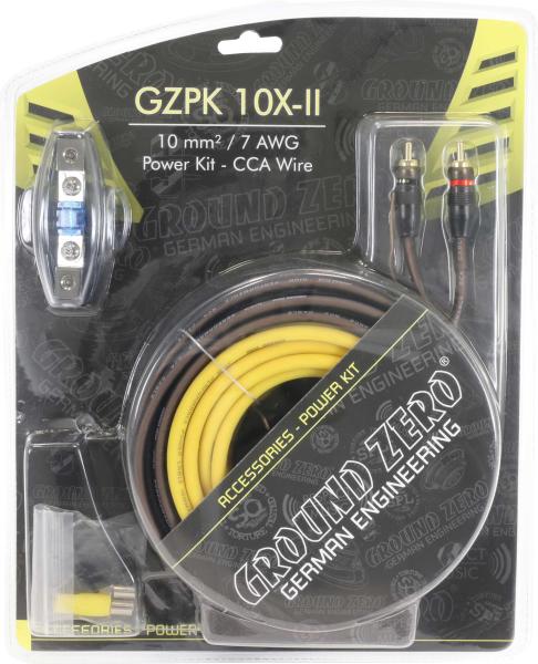 Ground Zero GZPK 10X-II Tápkábel szett 10mm2 5,2 méter tápkábel, 0,8m testkábel, 5m GZCC 5.3X RCA kábel. 60A Mini ANL Biztosíték és biztosítékház. Szerelési segédanyagok.