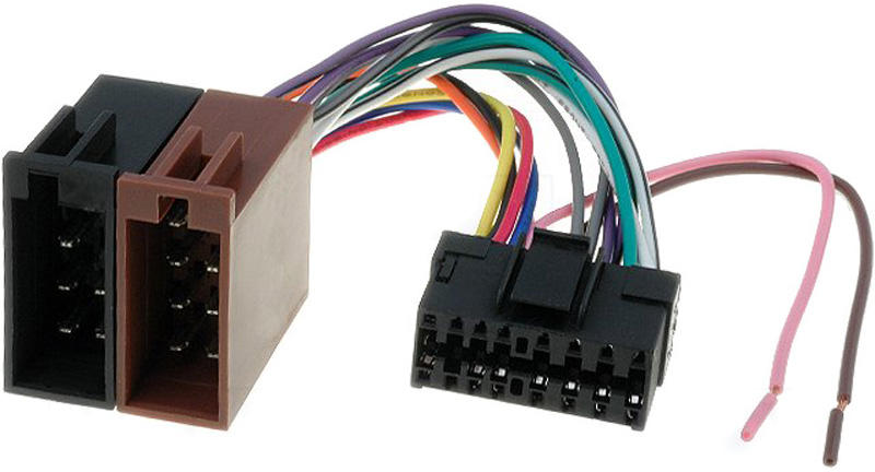 Sony autórádió ISO csatlakozó. Sony CD-, CDX-, MD-, MDX-, MEX-, WX-, XR-, XT-, XAV-. fejegységekhez kábel köteg. A csatlakozó kábelköteg tartalmazza a táp és a hangszóró kábeleket is, minden kábel feliratozva van a funkciójának megfelelően.