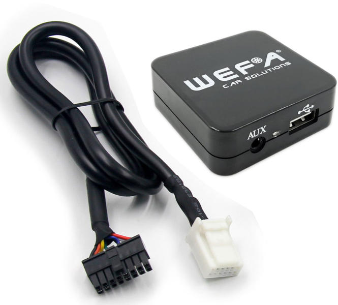 Wefa WF-605 (Mazda) USB, Aux illesztő. A Wefa WF-605 Virtuális CD-tárként megjelenő, integrált, digitális médialejátszó adapter. Megoldás arra ha MP3, WMA, FLAC típusú hang fájlokat szeretnénk hallgatni az autó gyári rádióján keresztül. CD minőségű hang átvitelre képes az autó gyári fejegységének CD váltó csatlakozóján keresztül.