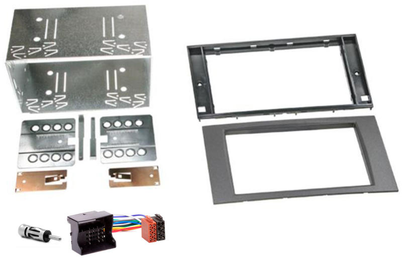 Audi A4, B7 (2005-2008) 2 DIN fejegység beszerelő készlet. A szett átalakító keretet, csatlakozókat tartalmaz és aktív adaptert, részben és BOSE full aktív erősítős rendszerekhez, ami a gyári rádió cseréjéhez szükséges lehet.