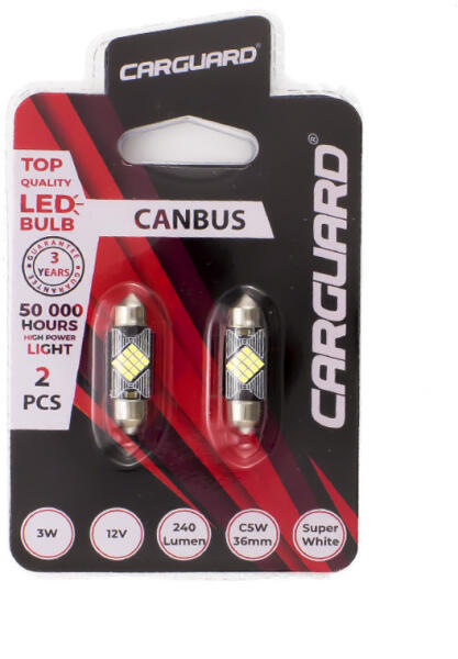 Autós LED - CAN134 - sofita 41 mm - 240 lm - can-bus - SMD - 3W - 2 db / bliszter Rendkívül hosszú, 50 000 órás élettartam, 3 év garanciával Fényesebb, mint a normál izzólámpák Foglalat:Sofit 41 mm (C5W vagy C10W)Feszültség:DC 12VTeljesítmény:3 WFényerő:240 lumenSzínhőmérséklet:6000 KFényforrás:12 SMD LED A terméket a helyi jogszabályokkal és előírásokkal összhangb