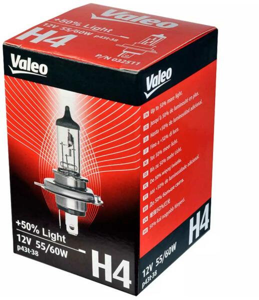 Valeo 032511 12V 60/55W H4 P43t-38 +50% Light fényszóróizzó Típus: H4 Foglalat: P43t-38 Névleges feszültség: 12V Névleges teljesítmény : 60/55W