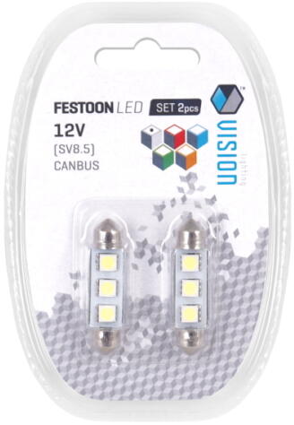 SV8.5 izzók a neves VISION márkától, magas minőség és a tartósság. Az izzók tökéletesek belső világításhoz, rendszámhoz, csomagtartóhoz, kesztyűtartóhoz stb. A LED izzók sokkal hosszabb élettartamot és nagyobb megtakarítást jelentenek. A LED-ek nem forrnak, mint a hagyományos izzók.
