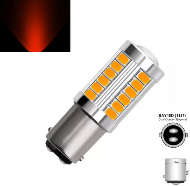 BAY15D led CANBUS piros 33smd DC12V projektoros Állapot: Új Feszültség: 12V Fogyasztás: 10 Watt Fényerő: 680 Lumen Szín: Piros Foglalat: BAY15D A BAY15D P21/5W foglalat rendszámvilágításban és helyzetjelzőben található meg.