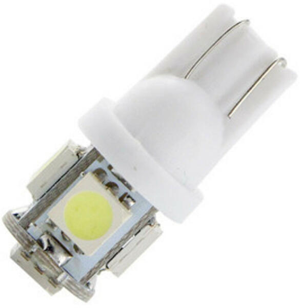 T10 led 5 smd fehér DC12V Állapot: Új Feszültség: 12V Fogyasztás: 2 Watt Fényerő: 240 Lumen Szín: Fehér Foglalat: T10 W5W A T10 foglalat helyzetjelzőben, műszerfal világításban, belső világításban vagy rendszámtábla világításban található meg. Alkalmas: hangulatvilágításnak, lábtér világításnak vagy helyzetjelzőnek
