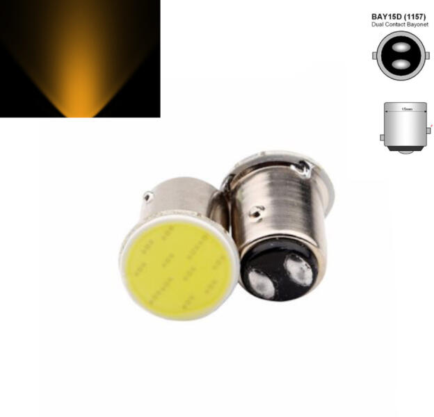 BAY15D led COB sárga DC12V Állapot: Új Feszültség: 12V Fogyasztás: 2 Watt Fényerő: 180 Lumen Szín: Sárga Foglalat: BAY15D A BA15S P21W foglalat rendszámvilágításban és helyzetjelzóben található meg.