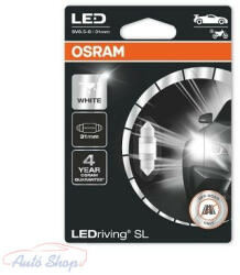 Izzó, belső világítás ams-OSRAM 6438DWP-01B Lámpa fajta:LED Feszültség [V]:12 V Névleges teljesítmény [W]:0,6 W Izzólámpa lábazat kivitelezése: SV8.5-8 Hossz [mm]: 31 mm LED-szín: fehér
