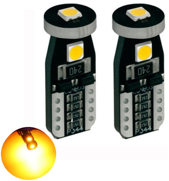 T10 Led Izzó sárga CANBUS 2dbA T10 led izzó sárga fényű SMD ledekkel rendelkezik. Kis mérete ellenére a speciális ledeknek és IC vezérlőnek köszönhetően nagy a fényereje. Nagyszerű választás irányjelzőnek, USA helyzetjelzőnek illetve műszerfalvilágitásnak mivel előre és oldalra is erőteljesen teríti a fényt. A kis mérete miatt olyan lámpatestbe is berakható ahol sz