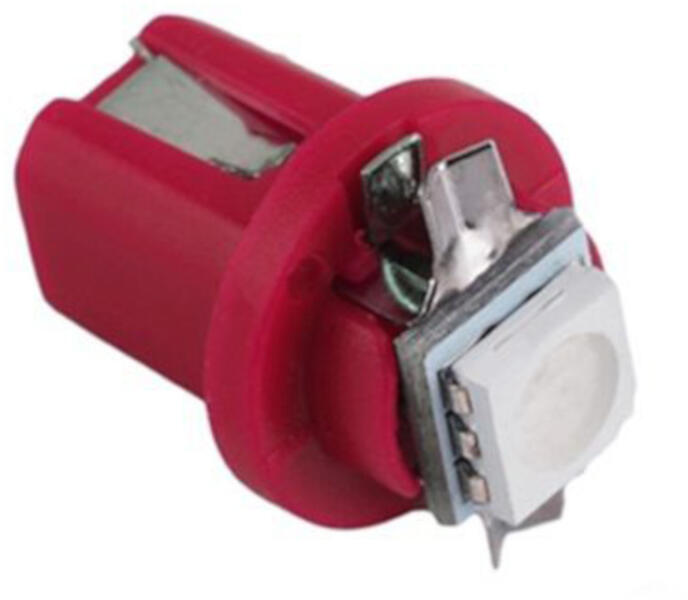B8.5D led műszerfal izzó 1 smd piros DC12V Állapot: Új Feszültség: 12V Fogyasztás: 0,4 Watt Fényerő: 80 Lumen Szín: Piros Foglalat: B8.5D A B8.5D foglalat műszerfalban és középkonzolban található meg.