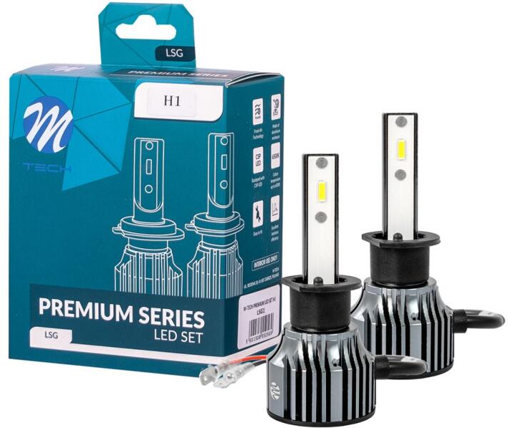 LED-készlet LSG sorozat M-TECH PREMIUM LED átalakító készlet, amelyet az eredeti sárga fényszórók kristálytiszta nappali fény színűvé alakítására terveztek. A készlet akár 200%-kal több fényt biztosít az eredeti beépítéshez képest. Az LSG szettek CSP 1860 típusú (multi-chip alapú) LED-ekkel vannak felszerelve, amelyek széles, akár 5000 lumenes fénysugárral javítj
