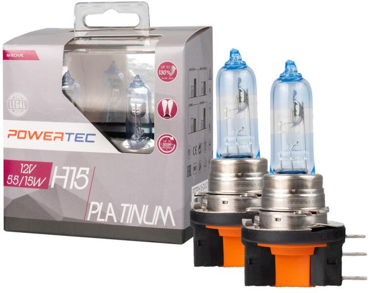 Powertec Platinum +130% H15 12V DUOA PowerTec Platinium 130%-kal jobb fénykibocsátással rendelkezik a többi hagyományos halogén izzóhoz képest Az izzó speciális konstrukciója, megfelelő szűrőkkel, csúcskomponensekre épülve, erős, messzemenő és hófehér fényt biztosít A Platinium izzók jellemzője, hogy ugyanaz a színhőmérséklet (Kelvinben mérve), mint bármely más má