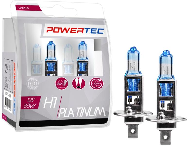 Powertec Platinum +130% H1 12V DUOA PowerTec Platinium 130%-kal jobb fénykibocsátással rendelkezik a többi hagyományos halogén izzóhoz képest Az izzó speciális konstrukciója, megfelelő szűrőkkel, csúcskomponensekre épülve, erős, messzemenő és hófehér fényt biztosít A Platinium izzók jellemzője, hogy ugyanaz a színhőmérséklet (Kelvinben mérve), mint bármely más már