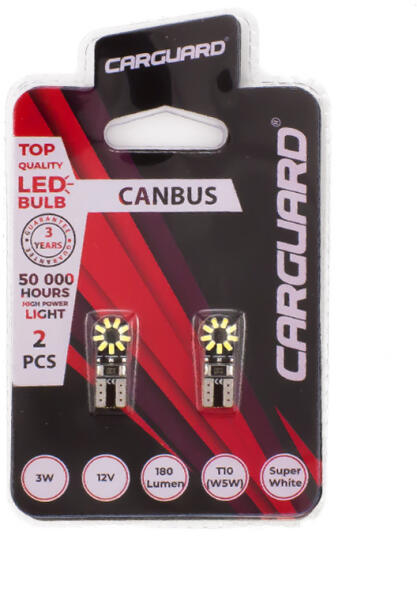 Autós LED - CAN126 - T10 (W5W) - 180 lm - can-bus - SMD 3W - 2 db / bliszter Rendkívül hosszú, 50 000 órás élettartam, 3 év garanciával Fényesebb, mint a normál izzólámpák Foglalat:T10 (W5W)Feszültség:DC 12VTeljesítmény:3 WFényerő:180 lumenSzínhőmérséklet:6000 KFényforrás:18 SMD LED A terméket a helyi jogszabályokkal és előírásokkal összhangban használja. A termé