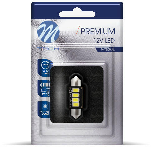 Megnevezések: C5W Alapjel: W2,1x9,5d LED-ek száma: 4xSMD5730 Szín: hideg fehér Teljesítmény: max. 1,7 W Lumen: max. 120 Feszültség: 12V CANBUS: Igen Az M-TECH LED retrofit izzók Premium sorozata a kiváló minőségű alkatrészeket vonzó árfekvéssel ötvözi. Kivételes tartósság jellemzi őket, köszönhetően az akár 16 V tűrésű feszültségstabilizátor használatának. Ez a