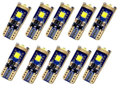 A legelterjedtebb autós LED foglalat a T10. Jellemzően a műszerfal , valamint visszajelző piktogrammok megvilágítására szolgál, valamint sokfelé használják az autóban: helyzetjelzőként , belső utastér világításként vagy rendszámtábla világításként. Adatok: Tápellátás: 12/24V Foglalat: T10 / W5W Teljesítmény: 1,8W LED-ek száma: 3db/izzó LED típusa: 3535 SMD Szính