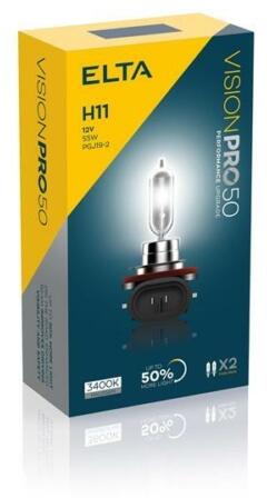 Elta VisionPro, izzó, 12V 55W PGJ19-2 H11, +50% emelt fényerő, 3400K, 2 darabos csomag
