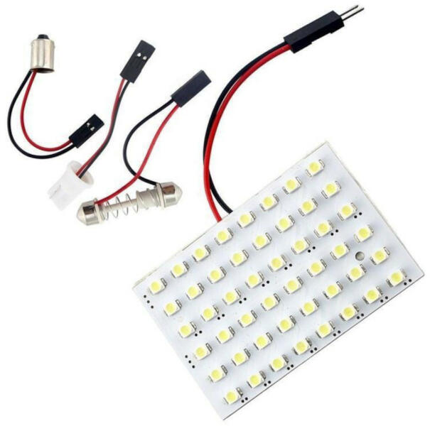 Led panel fehér 48 leddel 3 féle adapterrel Állapot: Új Feszültség: 12V Fogyasztás: 5 Watt Fényerő: 430 Lumen Méret: 59,5mm×40,5mm Szín: Fehér Foglalat: + féle adapter: Rugós szofita adapter(36mm-41mm), T10 w5w adapter és BA9S adapter