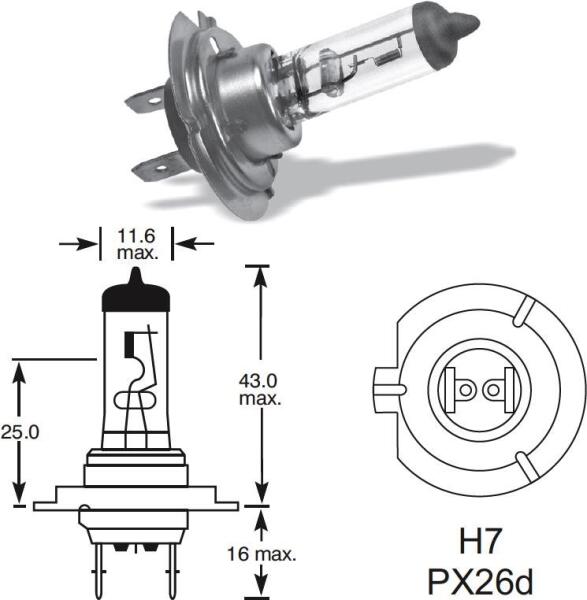 Tulajdonságok:Izzó: H7Izzó típus: PX26dTeljesítmény: 55WFeszültség: 12VE jelA csomagolásban 1 darab izzzó található