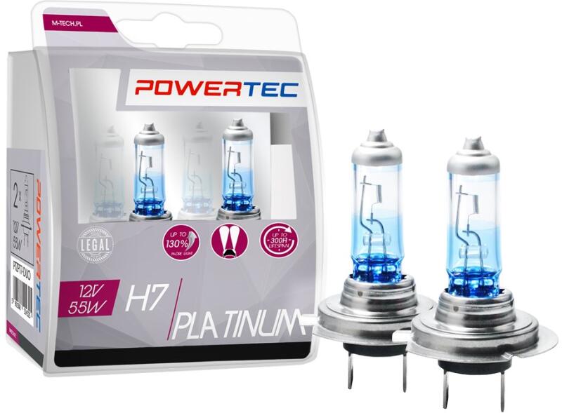 Powertec Platinum +130% H7 12V DUOA PowerTec Platinium 130%-kal jobb fénykibocsátással rendelkezik a többi hagyományos halogén izzóhoz képest Az izzó speciális konstrukciója, megfelelő szűrőkkel, csúcskomponensekre épülve, erős, messzemenő és hófehér fényt biztosít A Platinium izzók jellemzője, hogy ugyanaz a színhőmérséklet (Kelvinben mérve), mint bármely más már