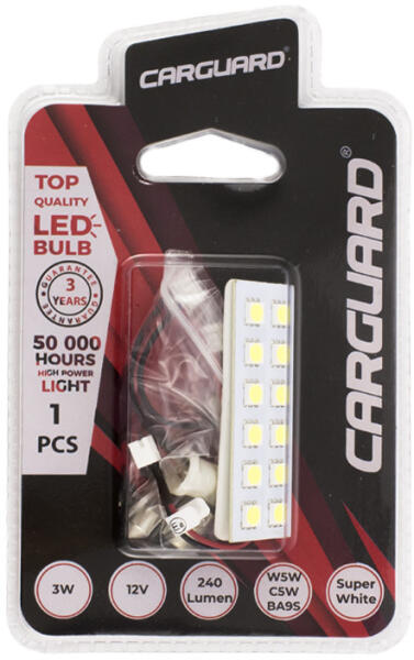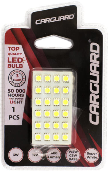 Autós LED - CLD315 - 65 x 35 mm (W5W, C5W, BA9S) - 480 lm - can-bus - SMD - 3W - 12V Rendkívül hosszú, 50 000 órás élettartam, 3 év garanciával Fényesebb, mint a normál izzólámpák Foglalat:W5W, C5W, BA9SFeszültség:DC 12VTeljesítmény:3 WFényerő:480 lumenSzínhőmérséklet:6000 KFényforrás:24 db SMD 5050 LED A terméket a helyi jogszabályokkal és előírásokkal összhangban
