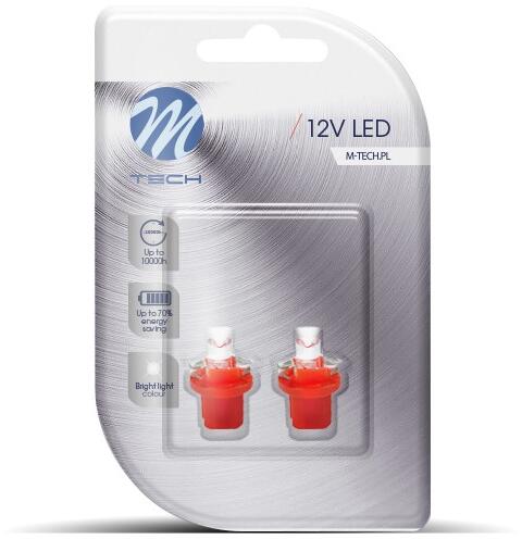 M-Tech T5, R5 LED dióda piros színű (pár)Izzó: T5, R5 Izzó típus: B8.5D LED típus: 1xLED Szín: Piros Teljesítmény: 0,2 W Feszültség: 12V Diódák típusa: 5mm, hengerelt Kérjük az NKH (Nemzeti Közlekedési Hatóság) ide vonatkozó rendeletét tanulmányozza a LED fényforrások használatára vonatkozóan! Ezen jármű-felszerelési cikk közúti forgalomban nem használható, kiz