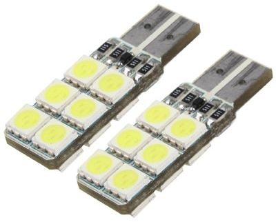 Hideg fehér autós izzó (T10) - Ledek száma: 12db - Szín: hideg fehér - Foglalat típus: T10 - Feszültség: DC 12V - Led típus: 5050 SMD - Csomagolás: bliszter - Az ár 1 párra vonatkozik. A csaomag 1pár ( 2db ) izzót tartalmaz.