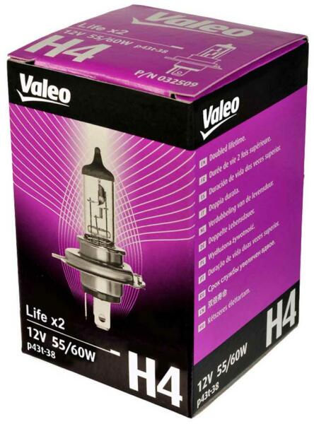 Valeo 032509 12V 60/55W H4 P43t-38 Life x2 fényszóróizzó Típus: H4 Foglalat: P43t-38 Névleges feszültség: 12V Névleges teljesítmény : 60/55W
