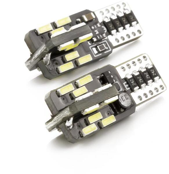 Rendkívül hosszú, 50 000 órás élettartam, 3 év garanciával Fényesebb, mint a normál izzólámpák Foglalat:T10 (W5W)Feszültség:DC 12VTeljesítmény:3 WFényerő:240 lumenSzínhőmérséklet:6000 KFényforrás:24 SMD LED A terméket a helyi jogszabályokkal és előírásokkal összhangban használja. A termék kizárólag közúti vagy közforgalom elől elzárt magánúton közlekedő