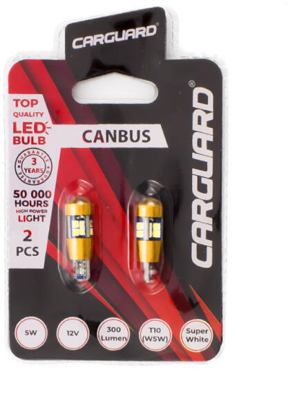 Autós LED - CAN130 - T10 (W5W) - 300 lm - can-bus - SMD - 5W - 2 db / bliszter Rendkívül hosszú, 50 000 órás élettartam, 3 év garanciával Fényesebb, mint a normál izzólámpák Foglalat:T10 (W5W)Feszültség:DC 12VTeljesítmény:5 WFényerő:300 lumenSzínhőmérséklet:6000 KFényforrás:17 SMD LED A terméket a helyi jogszabályokkal és előírásokkal összhangban használja. A term