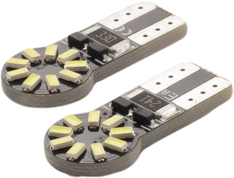 A jelölések: W5W Az alapszimbólum: W2.1x9.5d Számdióda: 2xLED Típusdiódák: SMD5050 Technológia: CANBUS Teljesítmény: 0.48W Feszültség: 12V DC Csere: W5W, T10, R10, W2.1x9.5d Alkalmazás: Helyzetjelzők, ajtó és kesztyűtartó világítás, az autó belső világítása, rendszámok, jelzőlámpák. A Led izzók előnyei: hosszabb élettartam a normál izzókhoz képest alacsonyabb f