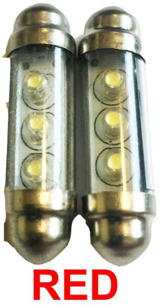 SOFITA 10x39mm típusú piros színű LED izzó Foglalat: SOFITA Méret: 10x39mm Feszültség: 12V szín: piros ~30 lumen 3 LED A termék ára / párra vonatkozik! Itt a lehetőség az autóban is spórolni az árammal, aksival! Autó lámpába való rendszám és belső tér világító led égő. Az égőt takaró műanyag nem színeződik el( nem sárgul be), mert a Lednél nincs hőtermelés!