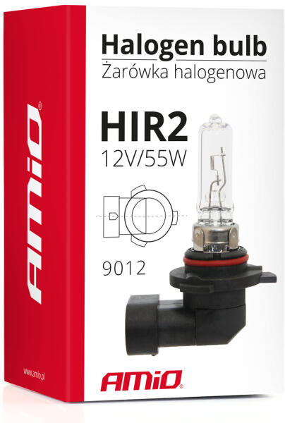 Kiváló minőségű halogén izzó, mely a HIR2-es 9012-es tokozású szabványnak felel meg. Adatok: Tápellátás: 12V Teljesítmény: 55 watt Foglalat: HIR2 Tokozás: 9012 Fényerő: 1800 lumen Várható élettartam: kb. 500 munkaóra Lámpafej: PX22d Kiszerelés: darabos E minősítés: IGEN