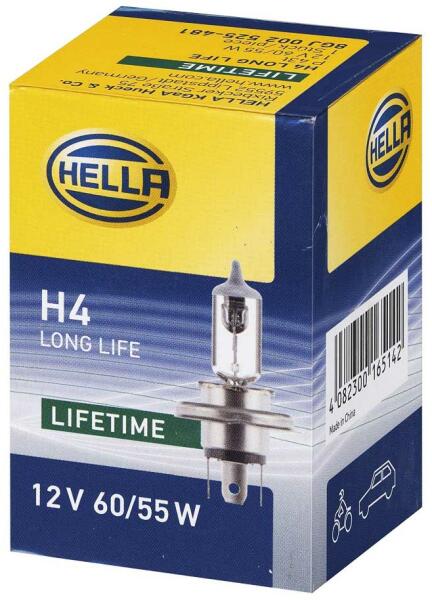Hella 8GJ 002 525-481 12V 60/55W H4 P43t-38 Lifetime fényszóróizzó Típus: H4 Foglalat: P43t-38 Névleges feszültség: 12V Névleges teljesítmény: 60/55W