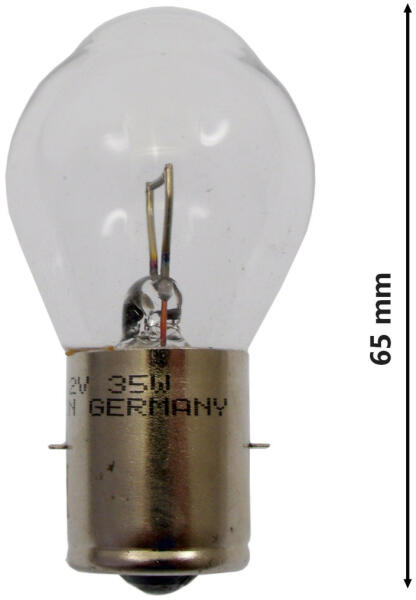 Működési feszültség: 12V Teljesítmény: 35W Foglalat kód: Ba20 Foglalat átmérője: 20 mm Eladási egység: 1 db