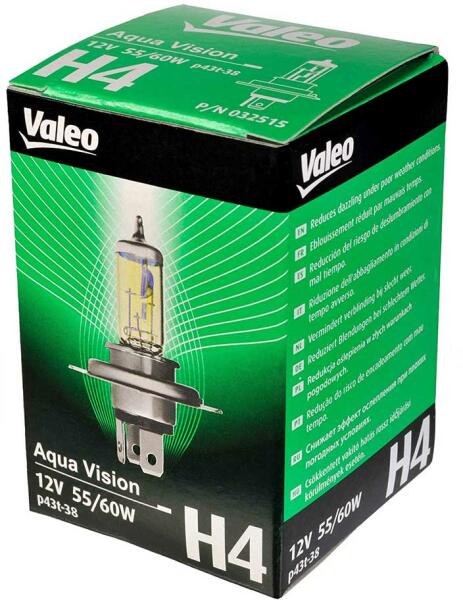 Valeo 032515 12V 60/55W H4 P43t-38 Aqua Vision fényszóróizzó Feszültség: 12V Névleges teljesítmény : 60/55W Típus: H4 Foglalat: P43t-38