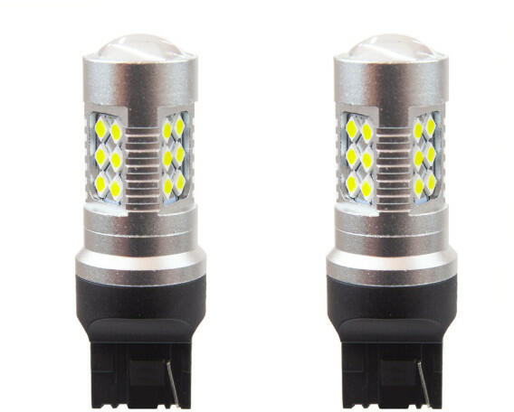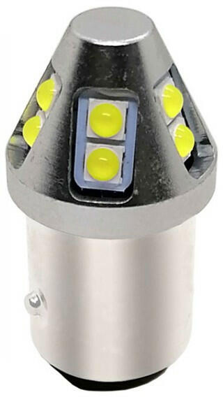 BAY15D led fehér 2dbA led izzó egész burkolata fémből van, így nagyon masszív és kiválóan elvezeti a keletkezett hőt. A COB led paneleknek köszönhetően erőteljes fényt képes leadni. A vetítő lencse 120 fokban szórja a fényt, így szépen teríti, nem pont szerű mint a régebbi típusoknál. A led izzó hideg fehér fényű. A 21/5 wattos izzóknak megfelelően ennél a ledné