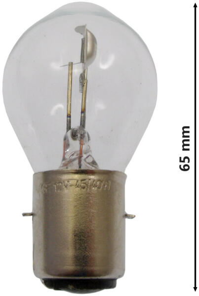 Működési feszültség: 12V Teljesítmény: 45/40 W Foglalat típusa: Ba20 Foglalat átmérője: 20 mm Eladási egység: 1 db