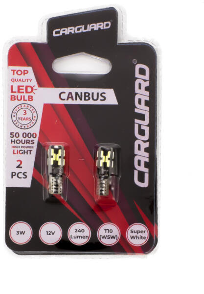 Autós LED - CAN128 - T10 (W5W) - 240 lm - can-bus - SMD 3W - 2 db / bliszter Rendkívül hosszú, 50 000 órás élettartam, 3 év garanciával Fényesebb, mint a normál izzólámpák Foglalat:T10 (W5W)Feszültség:DC 12VTeljesítmény:3 WFényerő:240 lumenSzínhőmérséklet:6000 KFényforrás:24 SMD LED A terméket a helyi jogszabályokkal és előírásokkal összhangban használja. A termé