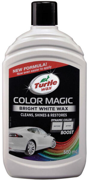 Turtle Wax Color Magic Jet White Wax, Polírozó paszta fehér, 500ml Color Magic Plus a világ legfejlettebb autópolírja. Használatával a karosszéria visszanyeri eredeti színét és fényét, eltűnnek a festéken keletkezett karcolások és kopások, valamint eltávolítja a beívódott makacs szennyeződéseket. Hatékony viaszos védelmet nyújt az időjárás és a savas esők káros ha