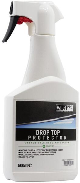 Megjegyzés: Ez a leírás automatikusan le lett fordítva magyarra. Valet Pro Drop Top Protector átalakítható páraelszívó tisztító oldat, 500 ml A Drop Top Protector védőfóliát biztosít az átalakítható motorháztető számára, amely eltaszítja a jövőbeni szennyeződéseket. Hogyan kell használni: Használat előtt tisztítsa meg a kabrió elszívót Drop Top Cleanerrel. Enyh