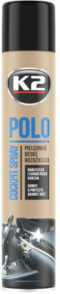 A K2 POLO COCKPIT spray a műszerfal ápolására és tisztítására. A K2 POLO COCKPIT egy spray a műszerfal ápolására és karbantartására. Speciális nanorészecskéket tartalmaz, amelyek gyorsan és egyszerűen megvédik az egész pilótafülkét, és visszaadják a megtisztított elemek mély színét és kifejező textúráját. A termék behatol a megtisztított anyagba, kiemelve a m
