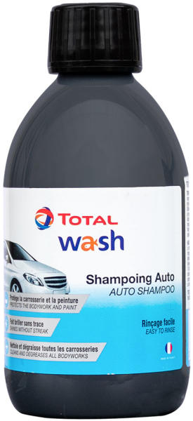 Total Auto Shampoo, autósampon, 300ml Oldószermentes formulájának köszönhetõen a TOTAL Auto Plus sampon könnyedén eltávolítja a makacs szennyezõdéseket és rovarnyomokat, és ragyogó fényt hagy maga után a jármű fényezésén. Stabil, homogén és enyhén illatos jól habzó sampon, ami könnyen öblíthetõ és foltmentesen szárad. Kiszerelés: 300ml