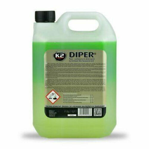 A K2 DIPER erős, kétkomponensű, lúgos mosószer, magas koncentrációjú és habzó tulajdonságokkal. Eltávolítja az autók karosszériájának legkeményebb szennyeződéseit. , , Tökéletesen alkalmas tartályok, padlók tisztítására a garázsban és szervizállomáson és műhelyekben. Koncentrált formában a terméknek két rétege van, de felhasználás céljából hígítva tök