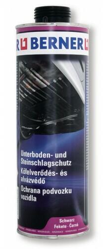 Berner alvázvédő ütésálló 1L. Berner alvázvédő ütésálló, fekete, 1 literes szórópisztolyra csavarható flakonban. A Berner UBS 2000 kőfelverődés védő és alvázvédő gépkocsi-fenéklemezek, sárvédők, kerékdobok, mellső és hátsó köténylemez stb. tartós réteggel való ellátására. Gyorsan szárad. Véd a kőfelverődéssel és a korrózióval szemben. Ellenáll a